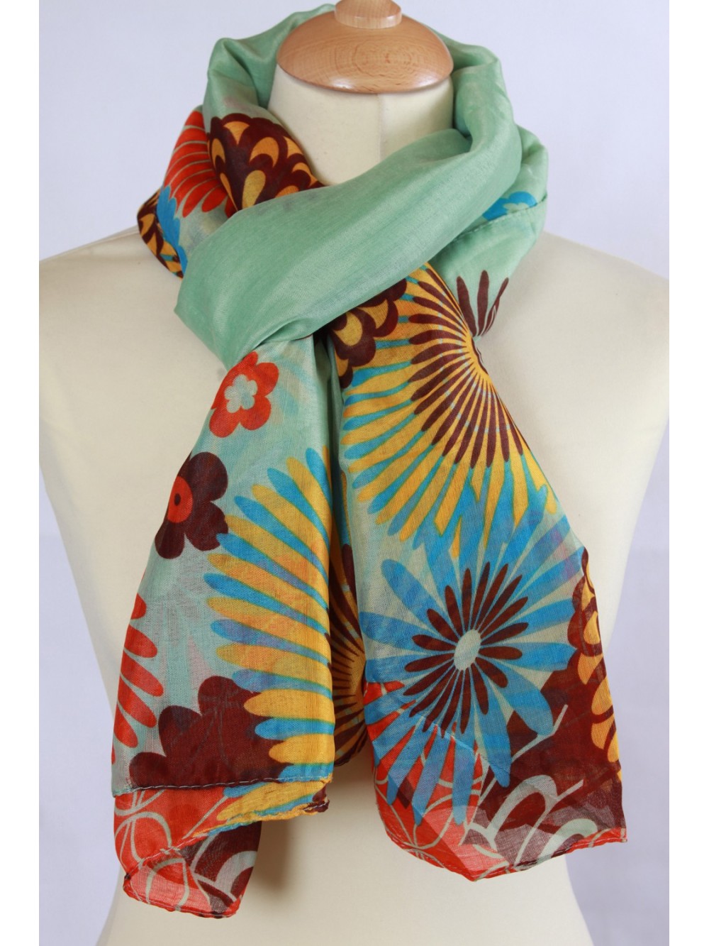 Le chèche imprimé femme se porte noué ou enroulé autour du cou.