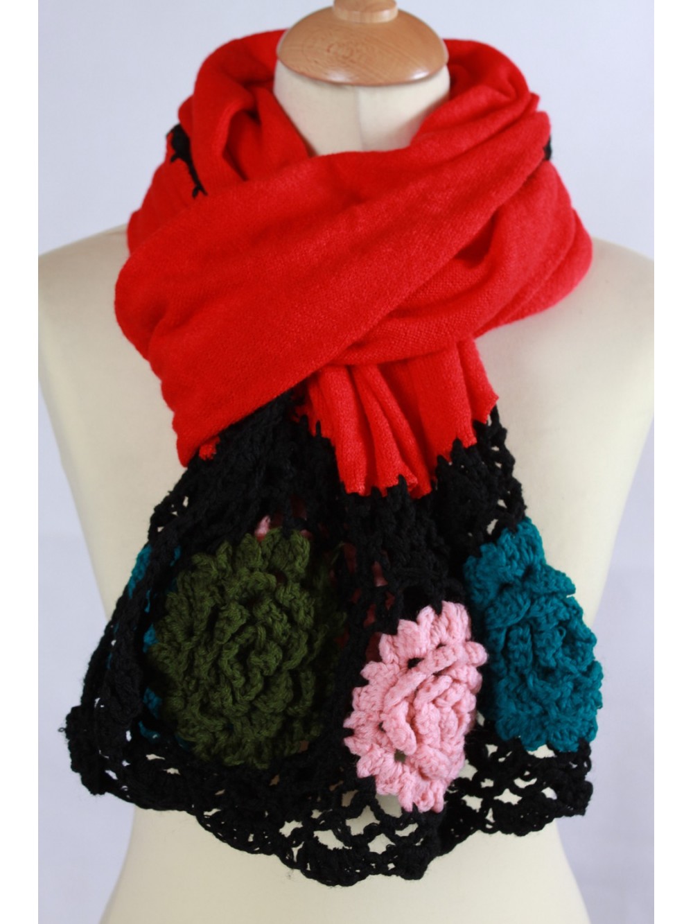 Les fleurs en crochet rendent cette écharpe bohème très féminine . On la porte avec une longue jupe ou un jean pour un style cool et glamour .