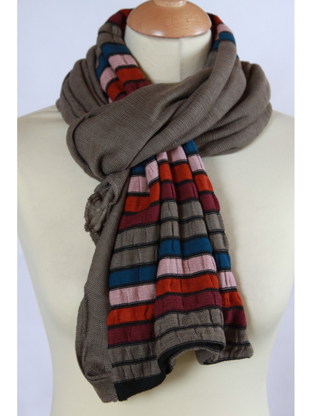 Rayure : bleu , beige , marron , fuschia et orange
